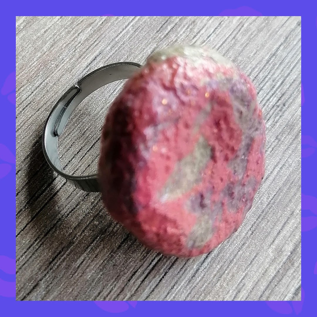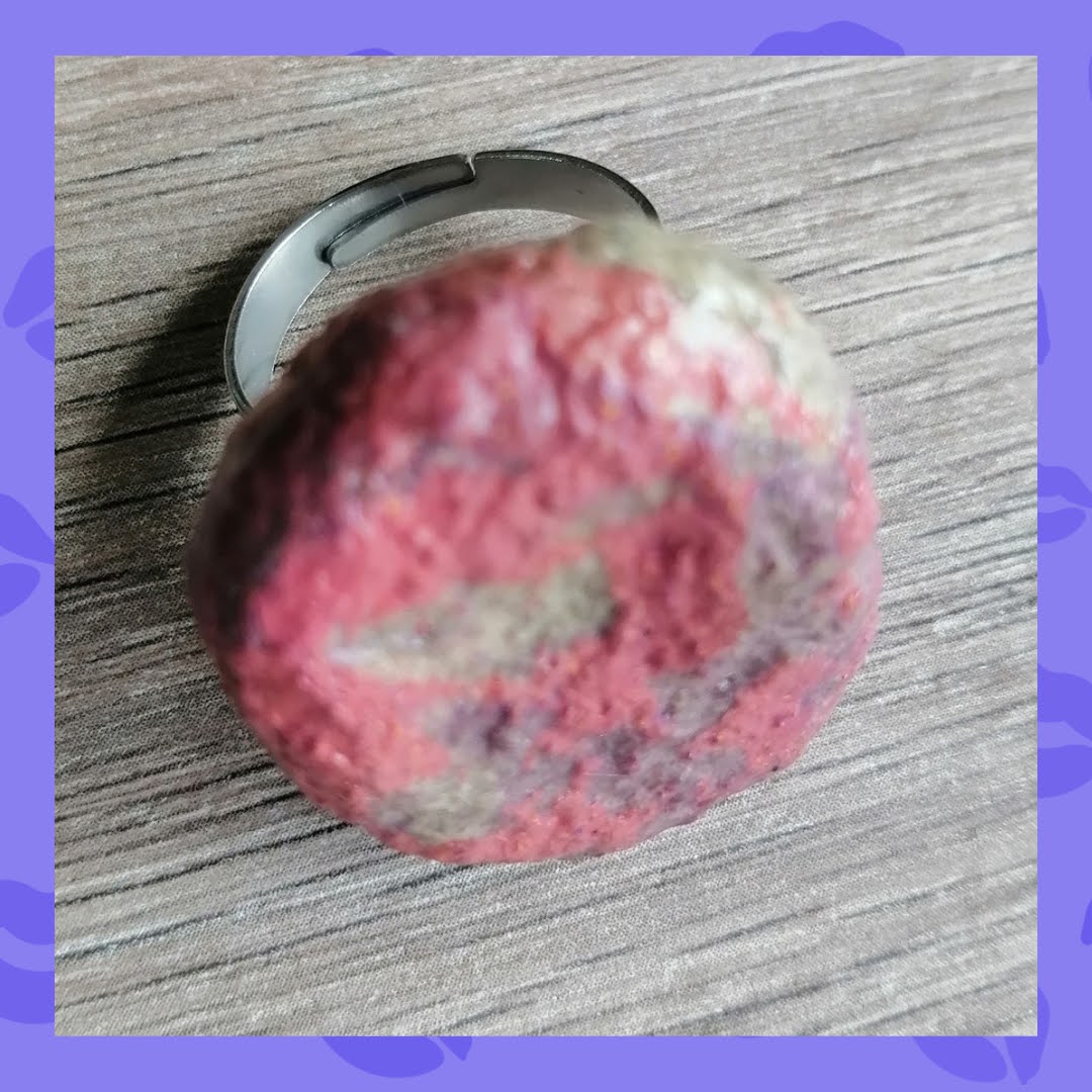 Anillo graduable con base en Acero inoxidable. Aspecto de miniroca en tonos grises y rosas.