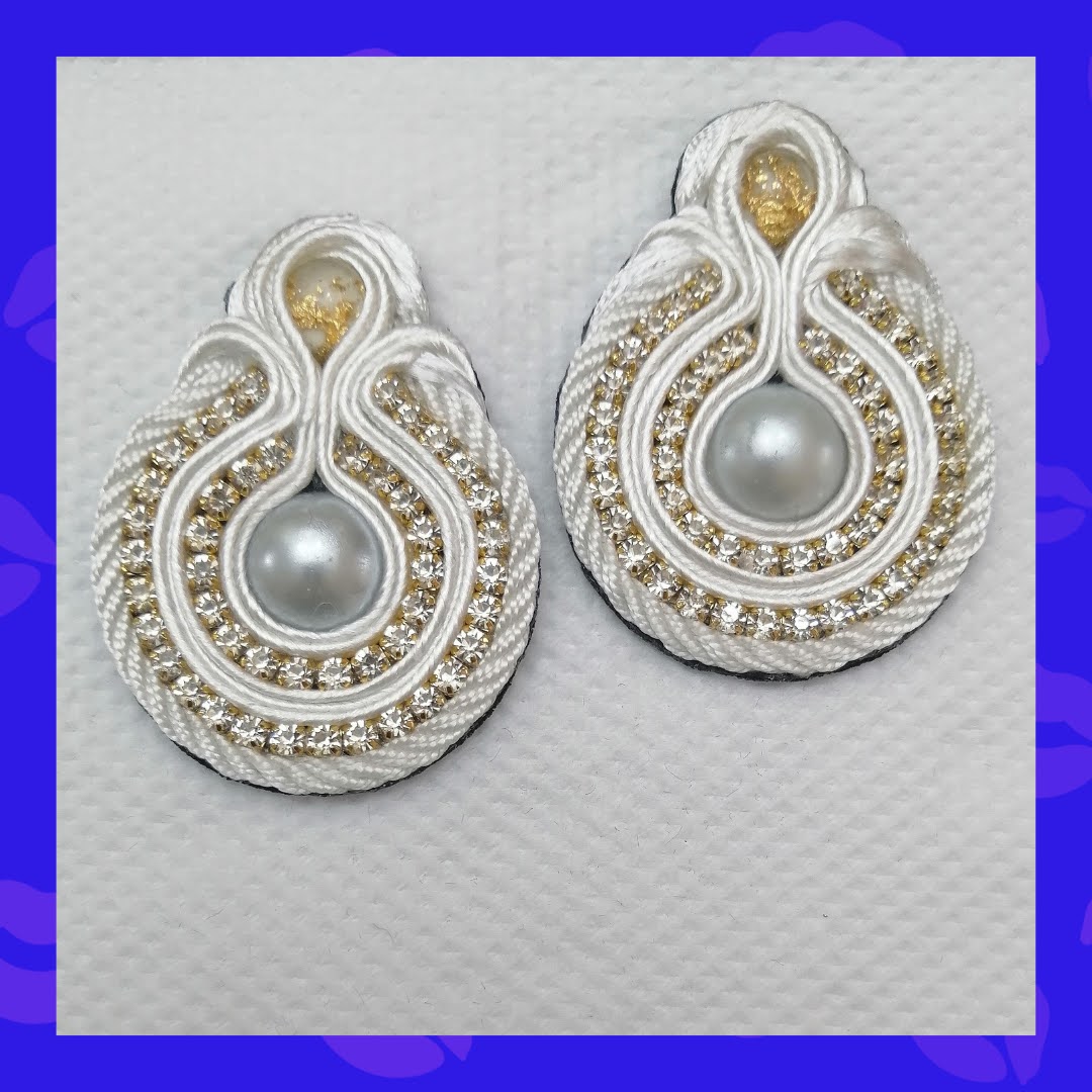 Aretes en Soutache blanco y Estrass dorado. Super livianos.
