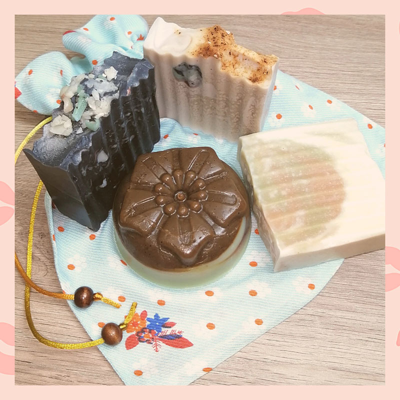 Contiene: 3 Jabones Artesanales de 100+ gramos (Pastilla) y 1 Jabón Artesanal de 90+ (Flor), según referencias disponibles.