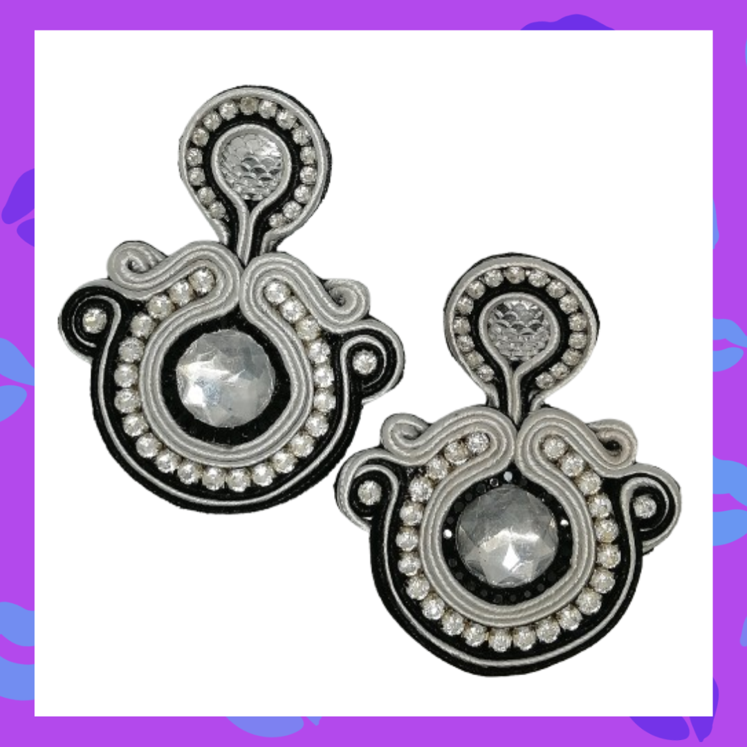 Aretes en Soutache Negro y Plateado con Estrass plateado y negro. Super livianos.